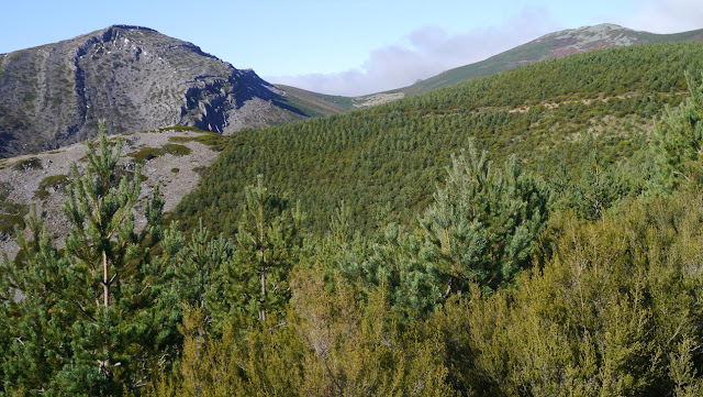 | Plantaciones de pinos cerca del pico Bustillo con el Pico de Santiago a la izquierda. |