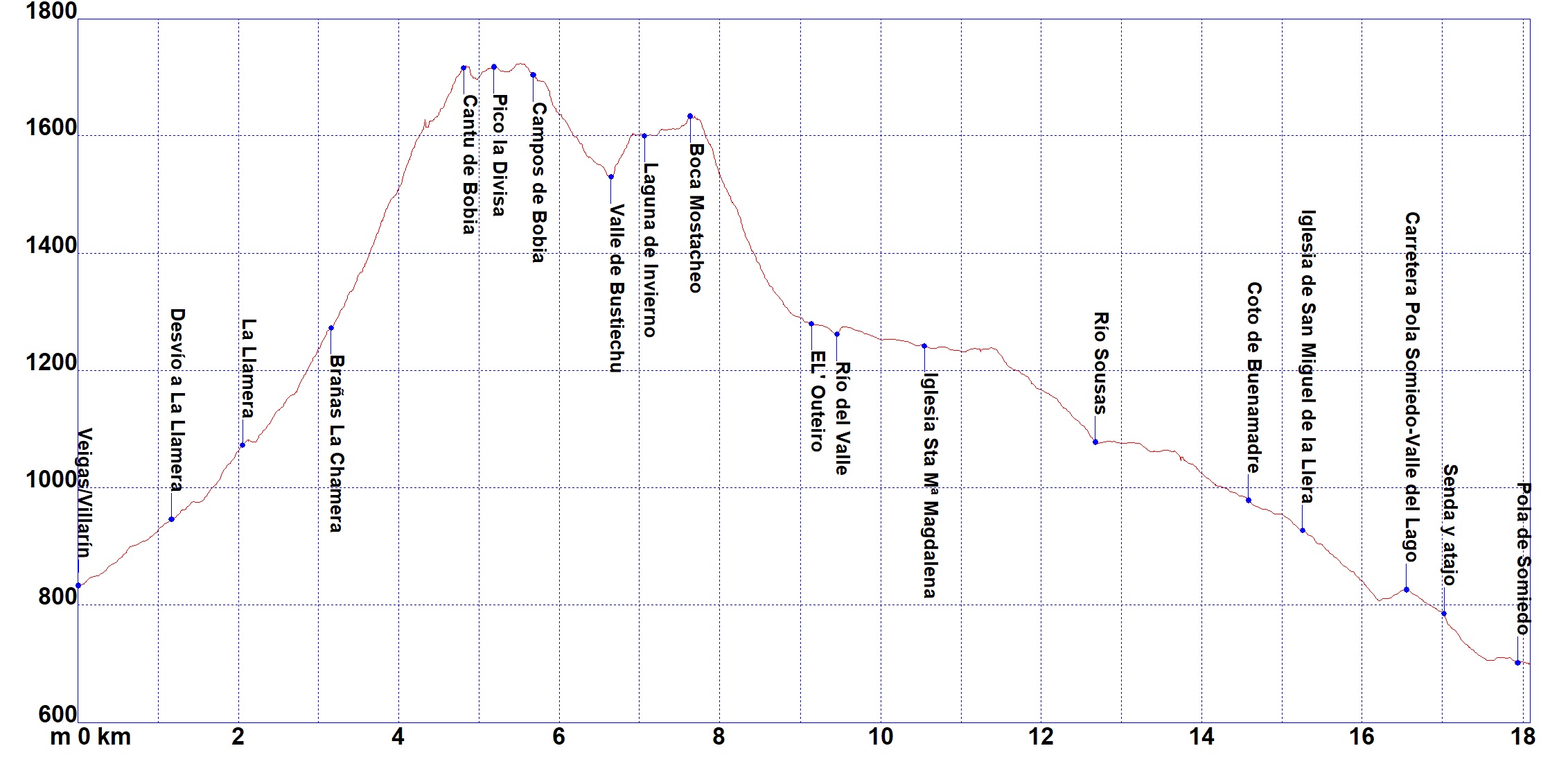 Itinerario: Área Recreativa “La Pesanca”– El Muñizón – Río Infierno (desvío y cruce) – Arroyo la Estaquera o Degoes – Cureñu – Collado Traslafuente – Monte Traslafuente – Arroyo de Llivarda – Reguero Xunelar – La Foz – Arroyo de Llivarda – El Colláu – Valle Moru (Vallimoru). Vuelta por el mismo camino.